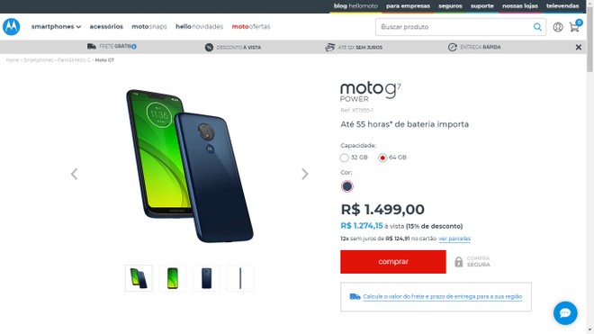 Após muitos pedidos, a Motorola decide trazer a variante de 4GB de memória RAM do Moto G7 Power, com 64 GB de espaço interno e custando R$100 a mais, passando de R$ 1.399 para R$ 1.499.